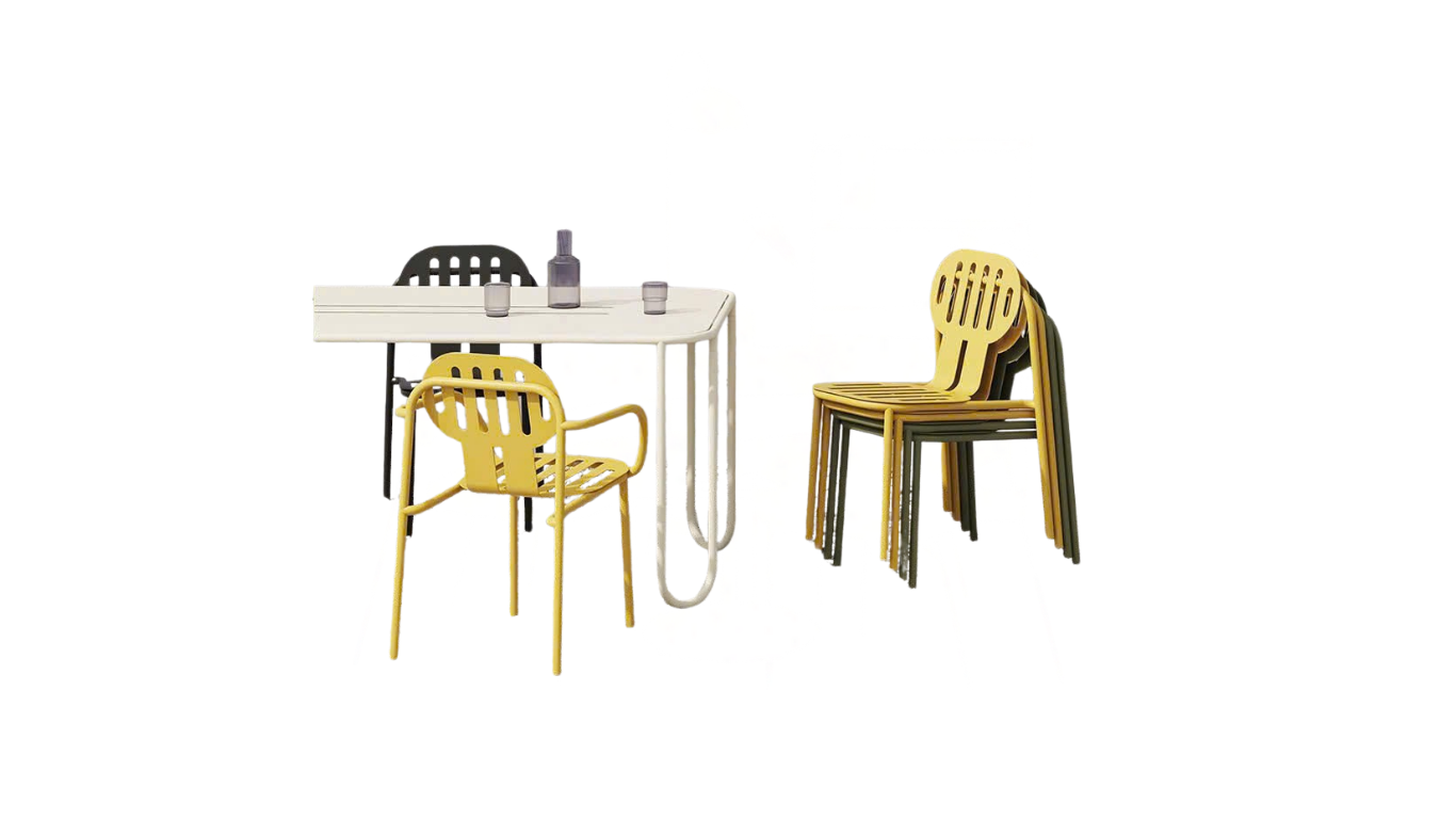 Bàn ghế sắt 1007 được thiết kế thông minh với khả năng xếp chồng tiện lợi, giúp tiết kiệm diện tích khi không sử dụng. Điều này đặc biệt hữu ích cho các không gian thương mại như quán cafe, nhà hàng, giúp việc dọn dẹp và sắp xếp trở nên dễ dàng hơn. Hơn nữa, chất liệu sắt sơn tĩnh điện cũng rất dễ vệ sinh và làm sạch bụi bẩn một cách nhanh chóng.