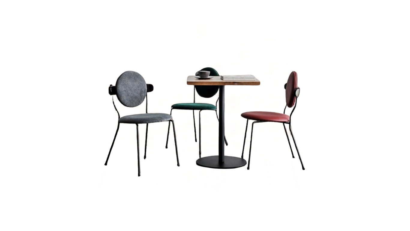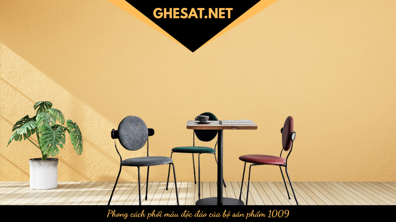 Điểm nhấn nổi bật của bàn ghế sắt nhà hàng 1009 chính là thiết kế tối giản nhưng vô cùng tinh tế. Ghế có dáng tròn mềm mại ở phần tựa lưng và đệm ngồi, tạo sự hài hòa, gần gũi mà vẫn giữ nét sang trọng. Bàn vuông đi kèm mang phong cách hiện đại với chân trụ sắt vững chãi, mặt bàn gỗ phối sắc tự nhiên, tạo nên tổng thể cân đối và thanh lịch.