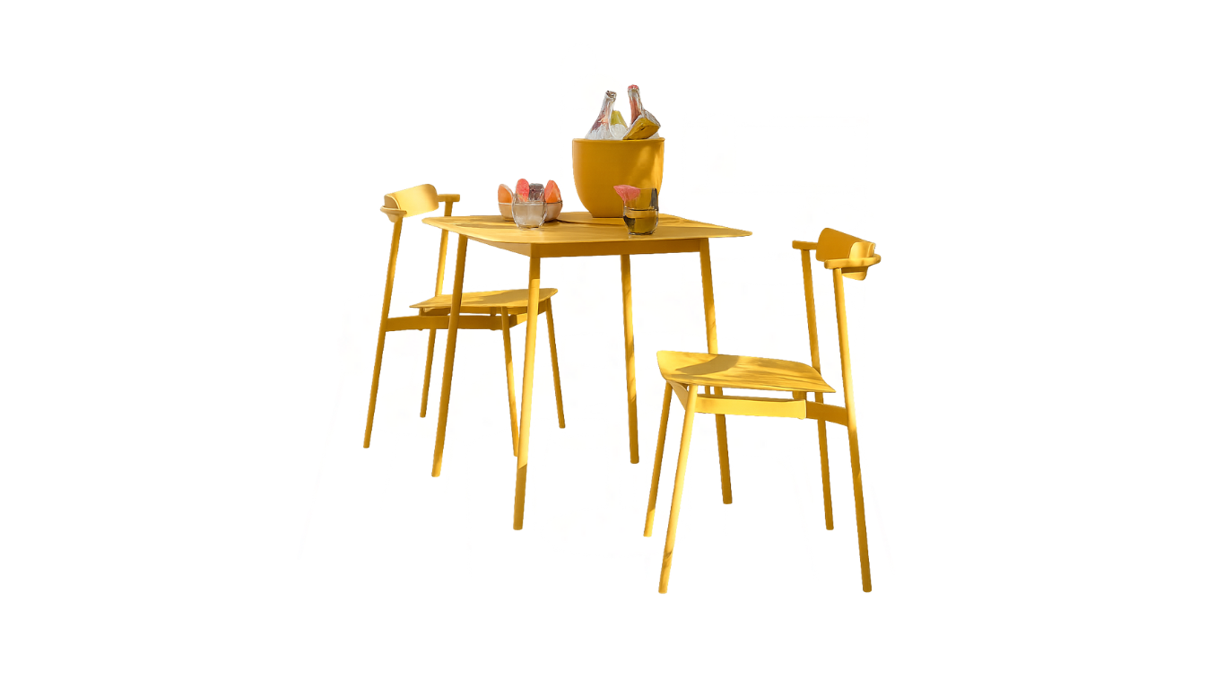 Bàn ghế sắt 1010 gây ấn tượng với kiểu dáng gọn gàng, hiện đại. Chiếc bàn mặt vuông bo góc mềm mại, kết hợp cùng những chiếc ghế có phần lưng tựa và tay vịn tối giản, tạo nên tổng thể hài hòa và trẻ trung. Đặc biệt, gam màu vàng nổi bật khiến sản phẩm như bừng sáng không gian, đem đến cảm giác tươi mới, tràn đầy năng lượng.