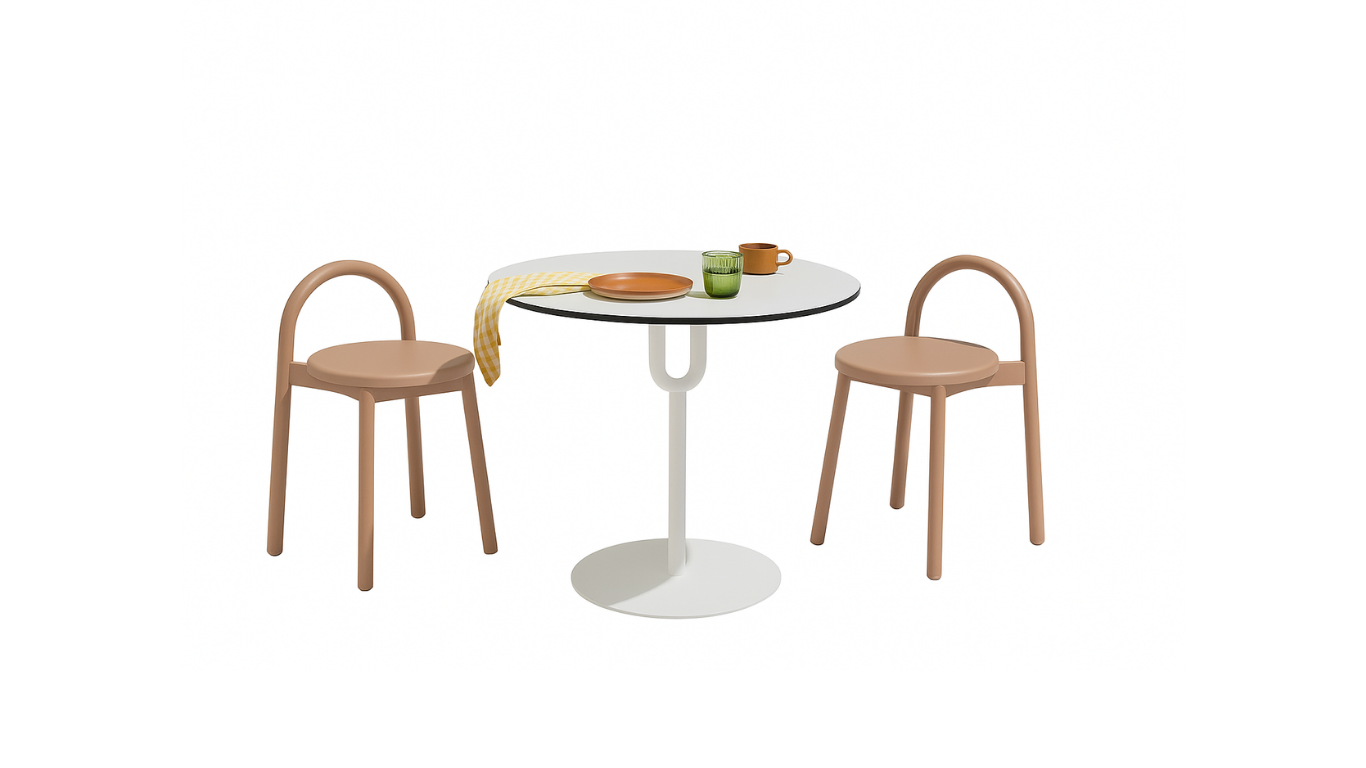 Ghế thiết kế thanh thoát, đường cong ôm lưng nhẹ nhàng, màu nâu be ấm áp tương phản hài hòa với bàn trắng. Sự phối hợp màu sắc và hình khối đơn giản này giúp bộ sản phẩm phù hợp với nhiều phong cách khác nhau. Từ phong cách hiện đại trẻ trung đến scandinavian tinh tế, hay thậm chí là không gian mang hơi hướng industrial.