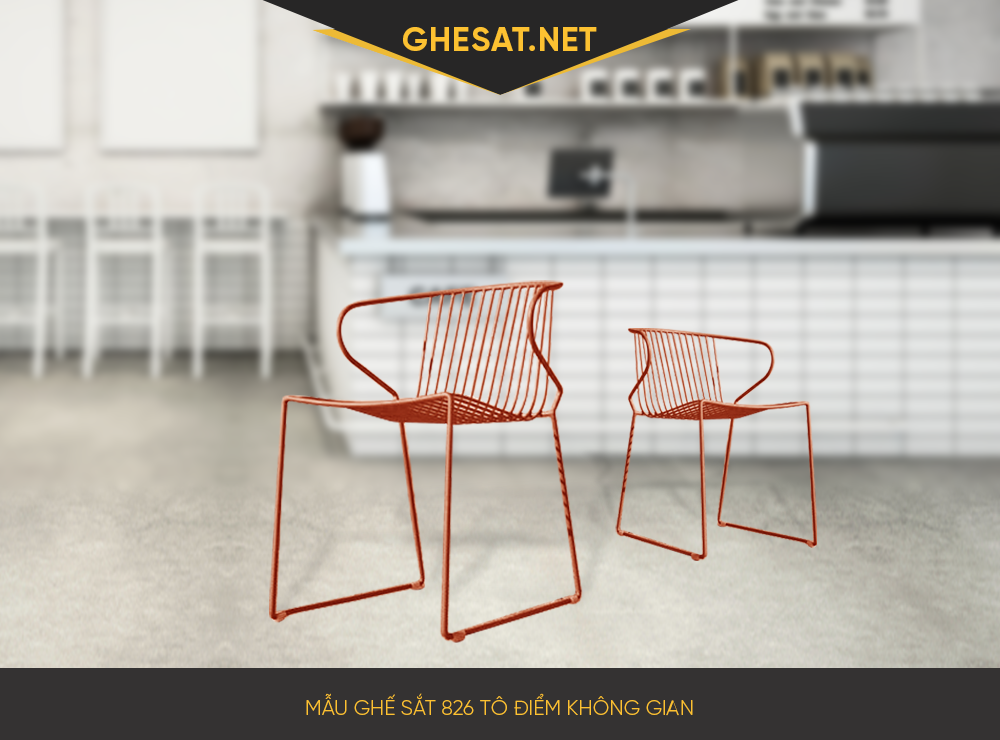Mẫu ghế sắt 826 với sắc đỏ cam chắc chắn sẽ là sản phẩm mang đến nhiều điểm nhấn cho không gian quán cafe. Đặc biệt, trong không gian nội thất theo phong cách cổ điển hoặc sang trọng. Bạn cũng có thể lựa chọn mẫu sản phẩm này. Với những ai tìm hiểu về phong thủy thì mẫu ghế sắt cũng cực kỳ phù hợp cho người mệnh Hỏa nhé.