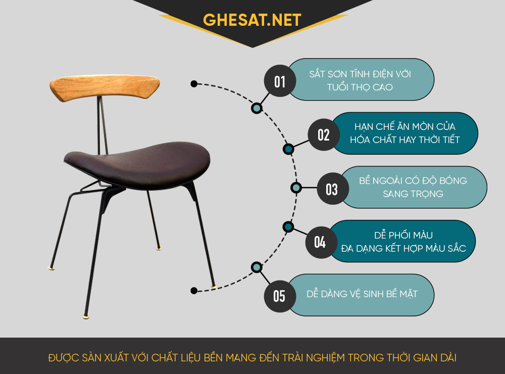 Ngoài những ưu điểm tuyệt vời của vẻ bề ngoài ghế sắt 829. Chất liệu tạo nên sản phẩm cùng là yếu tố góp phần tạo nên sự tin tưởng của khách hàng sở hữu.