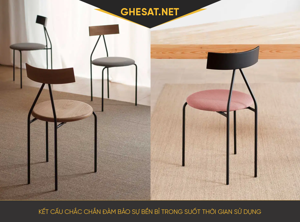 Phần khung ghế được chọn chế tác từ những thanh sắt sơn tĩnh điện tưởng như mỏng manh này, thực tế lại rất vững chắc. Chúng có kết cấu bền và có thể chịu được tải trọng lên tới gần 200kg.