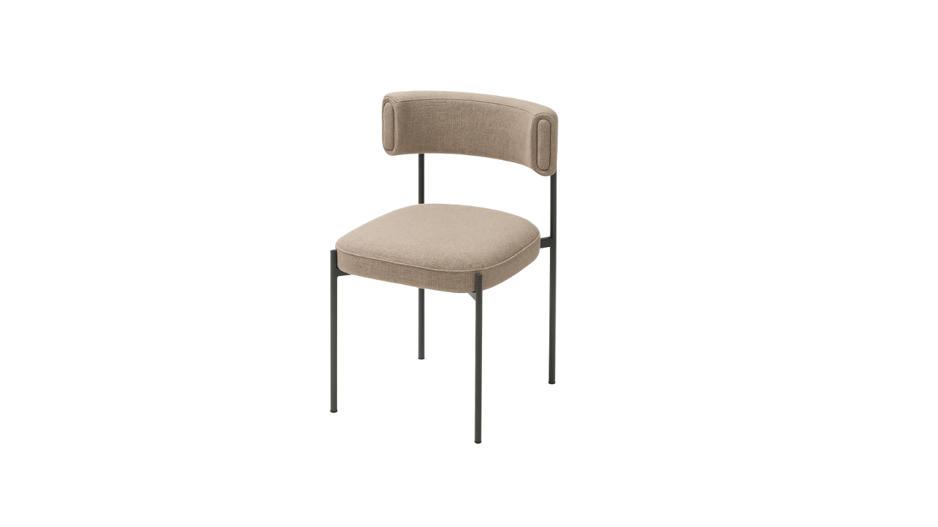 Điểm nhấn đặc biệt của mẫu ghế này nằm ở sự kết hợp giữa khung sắt sơn tĩnh điện đen mạnh mẽ và nệm bọc vải màu be. Đây là sự phối hợp màu sắc đầy tính thẩm mỹ: một bên vững chắc, sang trọng; một bên mềm mại, nhẹ nhàng. Nhờ đó, ghế dễ dàng hòa nhập với nhiều phong cách nội thất khác nhau, từ hiện đại, tối giản đến sang trọng, ấm cúng.